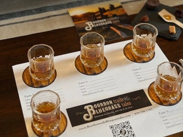 Your experience includes a curated tasting of 5 premium bourbons, where you'll sip, learn, and explore the rich history and craftsmanship behind each pour. To elevate your experience you have the option to: